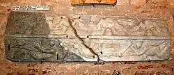 Sarcophagus commissioned by Pedro for his young son Alfonso. Originally in the monastery of Sahagún, it is now in the museum of San Isidoro de León. His epitaph reads: "On the sixth day of the Ides of December in the year of the Era 1131 [10 December 1093] died Alfonso, the dear son of Count Pedro Ansúrez and Countess Eylo."[1]