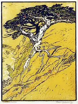 Pedro Joseph de Lemos (25 May 1882 – 5 December 1954) was an American painter, printmaker, architect, illustrator, writer, lecturer, museum director and art educator in the San Francisco Bay Area. Prior to about 1930 he used the simpler name Pedro Lemos or Pedro J. Lemos; between 1931 and 1933 he changed the family name to de Lemos, believing that he was related to the Count de Lemos (1576–1622), patron of Miguel de Cervantes. Much of his work was influenced by traditional Japanese woodblock printing and the Arts and Crafts Movement. He became prominent in the field of art education, and he designed several unusual buildings in Palo Alto and Carmel-by-the-Sea, California.[1]