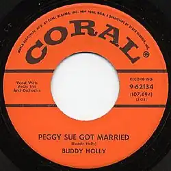 "Peggy Sue Got Married" is a song written and performed by Buddy Holly. It was posthumously released in July 1959 as a 45-rpm single with "Crying, Waiting, Hoping". It refers to his 1957 hit song "Peggy Sue". It was one of the first sequels of the rock era.