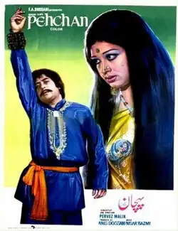 Pehchan is a 1975 Pakistani action-drama film directed by Pervaiz Malik. The film stars Nadeem and Shabnam, with Sabiha Khanam, Qavi Khan, and Munawar Saeed playing supporting roles. The film revolves around a family that lost its sole heir. The music was composed by Nisar Bazmi. It released on 1 August 1975 and was a success at the box office. At the 1975 Nigar Awards, the film received two awards.[1][2]