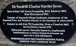 Dr (later Sir) Pendrill Charles Varrier-Jones (24 February 1883 – 30 January 1941) was a Welsh physician[1] who created Papworth Village Settlement, an industrial colony for the treatment and rehabilitation of tuberculosis patients.[2][3][1] From 1948, the treatment blocks of the settlement were passed to the National Health Service to become Papworth Hospital and the charitable foundation later became the Papworth Trust.[4][5]