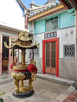 In the early years of Japanese rule, the government issued a ban on opium smoking. In response, the religious organization It-sin-siā (一新社) in Penghu promoted anti-opium campaigns through the Phoenix Hall Faith (鸞堂信仰), starting in 1901 (Meiji 34). Their efforts proved effective, and Phoenix Hall practices quickly gained popularity.[13] In 1906 (Meiji 39), influenced by It-sin-siā , two key figures at Guanyin Temple, abbot Tsai Teh-hsiu (蔡德修) and Huang Yu-fu (黃有福), who established the Iû-sin-siā at Síng-siān-tn̂g (由新社省善堂) within the temple. Prominent local intellectuals, including Lin Chieh-ren (林介仁) and Hsu Chin-ying (許晉纓), both are Qing licentiates, also joined as members. Phoenix Hall activities at Guanyin Temple remained active throughout the Japanese colonial period. However, after World War II, the temple's management was transferred to the Penghu Buddhist Association (澎湖佛教會), and Phoenix Hall practices were suppressed and eventually came to a halt for a time.[14][3]: 74-78