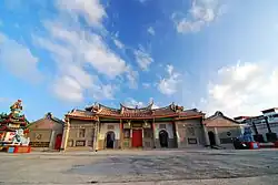 In 1875, the first year of the Guangxu reign, Huang Hsueh-chou (黃學周), a tribute student at the time, took the lead in raising funds to rebuild the temple.[2] According to the stele titled "Relocation of Wusheng Temple," which is still preserved at Penghu Wusheng Temple in Âng-mn̂g-siânn (紅毛城 / 紅木埕, a village in Magong City), Wu Chi-hsun (吳奇勳), then deputy commander of the Penghu Naval Garrison, also supported the project.[6] In Lu Wen-hsin's (呂文鑫) research on Penghu temples and their architectural styles, he points out that the reconstruction and design were led by Yeh Ma-li (葉媽利), great-grandfather of Yeh Ken-chuang,[7] from Âu-khut-thâm (後窟潭, a village in Magong City).[3]: 32-33
