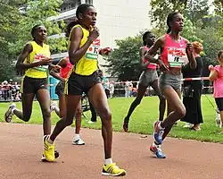 She won the 2009 Berlin 25K race setting a new course record and 25 Kilometres African record of 1:22:31 hours, erasing Catherine Ndereba's previous mark.[3] Her African and course records did not last past the following edition, which was won in 2010 by another Kenyan, Mary Keitany, in a new world record time (1:19:53).[4]