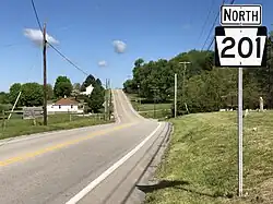 Pennsylvania Route 201, designated by the Pennsylvania Department of Transportation as State Route 201, abbreviated PA 201, is a 25-mile-long (40 km) south-north state highway located in Southwestern Pennsylvania in the counties of Fayette and Westmoreland. The southern terminus is at U.S. Route 119 (US 119)/PA 711 in Connellsville. The highway heads northwest and meets up with PA 51 twice at two separate locations and Interstate 70 (I-70) in Rostraver Township. The northern terminus is at PA 136 in Rostraver Township.