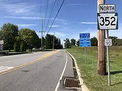 Pennsylvania Route 352 (PA 352) is a 19-mile (31 km) north–south route that runs from U.S. Route 13 Business (US 13 Bus.) in Chester, Delaware County, north to US 30 in Frazer, Chester County. The route passes through suburban areas of Delaware and Chester counties west of Philadelphia, serving Parkside, Brookhaven, Elwyn, Lima, Gradyville, and Goshenville. PA 352 is a four- to five-lane road between Brookhaven and US 1, otherwise it is generally a two-lane road. The route intersects Interstate 95 (I-95) in Chester and US 1 near Lima at interchanges. PA 352 was first designated by 1928 to run between its current termini. A portion of the route between Brookhaven and US 1 was realigned to a straighter alignment in the 1950s. By 1980, PA 352 was realigned to a short concurrency with PA 3 to avoid intersecting it at a sharp angle.