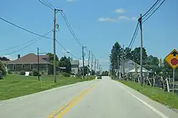 The two routes head into more agricultural land and cross into the borough of New Centerville, passing homes. PA 653 splits from PA 281 by turning south onto Bridge Street and running through more residential areas. The road crosses back into Milford Township and heads southeast through open farmland with some woods and homes. The route enters the borough of Rockwood and heads into residential areas, turning south. PA 653 turns east onto Main Street and passes more homes along with a few businesses, turning northeast. The route heads back into Milford Township and turns east onto Galico Road, with Main Street continuing north.[2][4]
