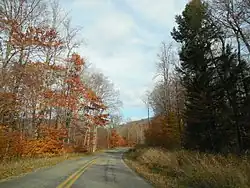PA 666 was assigned in the mass numbering of state routes in 1928.[3] This routing of PA 666 from Barnes to Nebraska, small municipalities in Forest and Warren Counties. After remaining intact for thirteen years, the highway was extended to Newmansville to terminate at PA 36 and PA 208.[4] This southern extension is now Newmansville Road, three quadrant routes, and two township roads. In 1946, PA 666 was extended westward to East Hickory, with the extension to Newmansville being decommissioned.[5][6]