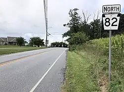 Pennsylvania Route 82 (PA 82) is a 32-mile-long (51 km) north–south state highway located in Chester County in southeast Pennsylvania, USA. The southern terminus is at the Delaware state line southeast of Kennett Square, where the road continues south into that state as Delaware Route 82 (DE 82). The northern terminus is at PA 23 in Elverson. PA 82 heads through rural areas of Chester County along with the communities of Kennett Square, Unionville, and Coatesville. The route intersects many important roads including U.S. Route 1 (US 1) near Kennett Square, PA 162 and PA 842 in Unionville, US 30 in Coatesville, and US 322 in Brandywine Manor. PA 82 is a two-lane undivided road most of its length.