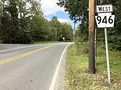 Pennsylvania Route 946 (PA 946) is a rural Pennsylvania state highway that runs approximately 18.2 miles (29.3 km) from PA 248 in Berlinsville east to PA 191 in Newburg in Northampton County in the Lehigh Valley region of the state.