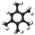 Pentamethylbenzene is an organic compound with the formula C6H(CH3)5. It is a colourless solid with a sweet odor. The compound is classified as an aromatic hydrocarbon. It is a relatively easily oxidized benzene derivative, with E1/2 of 1.95 V vs NHE.[1]