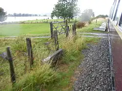 Pentrepiod ([pɛntrəˈpiːɔd] - 'Magpie Village') railway station is a small unstaffed railway halt on the Bala Lake Railway alongside the B4403. Trains will stop here by request only,[1] and the station can only be accessed by means of footpaths around the lake. The station has a short platform (one coach length only)[1] and a station name board and is situated on the east side of a private crossing. There are no station buildings.