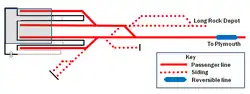 14. ^ Padgett, David (June 2018) [1989]. Munsey, Myles (ed.). Railway Track Diagrams 3: Western & Wales (6th ed.). Frome: Trackmaps. map 11B. ISBN 978-1-9996271-0-2.