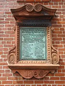 A Martello Tower was previously situated on the site in 1805, as visible on maps from 1817 and 1821. The land was later a quarry, and was acquired by the Kingstown Town Commission in 1889. The park was designed by J. L. Robinson, an architect who was chairman of the Town Commissioners, and also designed other local civic buildings. Funding was partly provided by the Local Government Board. [1]