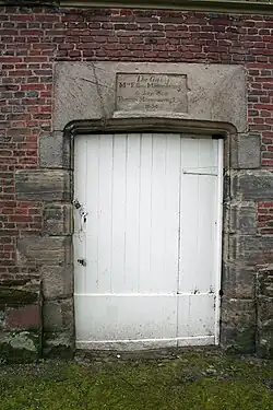 The block is in two storeys, and is built in red and plum-coloured brick with a slate roof and stone dressings. The brickwork is in English bond and the bricks in the upper storey are lighter in colour than those in the lower storey. The brickwork rests on a stone plinth, a string course runs between the storeys, and stone quoins are at the corners. The entrance door is in the centre and has a moulded stone surround. On the door lintel is an inscribed panel relating to the gift and its date. On each side of the door are three five-light windows with moulded stone surrounds and mullions. In the upper storey are three round pitch holes with plain stone surrounds. The rear extension consists of three gabled two-storey wings with single-storey loose boxes between them. The wings each have a circular hole in the first floor; in the middle wing this leads to a pigeon loft, while the others are pitch holes.[1]