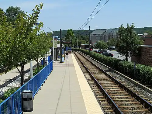 Pepper Road station is a Baltimore Light Rail station located in an industrial park in Hunt Valley, Maryland. The station opened in 1997 as part of the system's northern extension. It has a single side platform serving a single track.