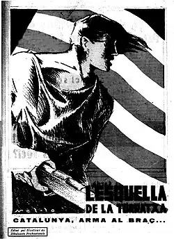 At the end of 1937, he enlisted as a volunteer in the Republican army, serving in the corps of customs officers, where he was appointed cartographic technician.[47] With the beginning of the Battle of Teruel, his cartographic unit was deployed there.[48] That same year, he submitted the unpublished novel La cèl·lula to the Joan Crexells Prize for narrative, which was ultimately won by Mercè Rodoreda with her novel Aloma.[49] La cèl·lula was lost during his return trip from exile.[50] From his war experience, he wrote the novel Unitats de xoc, published in 1938 by Editorial Forja.[51] In 1938, he also wrote the novel Gaeli i l'home Déu, which was not published until 1986,[52] and submitted it to the 1938 Joan Crexells Prize as well, but it did not win.[53][54]