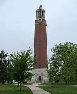 The Coughlin Campanile of South Dakota State University, designed by Perkins & McWayne in the Beaux-Arts style and completed in 1929.