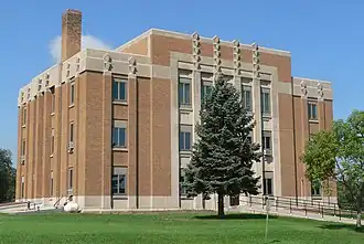 The Jerauld County Courthouse in Wessington Springs, designed by Perkins & McWayne in the Art Deco style and completed in 1930.