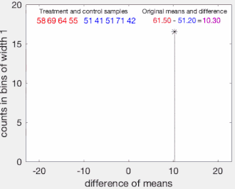 Permutation tests are a subset of non-parametric statistics. Assuming that our experimental data come from data measured from two treatment groups, the method simply generates the distribution of mean differences under the assumption that the two groups are not distinct in terms of the measured variable. From this, one then uses the observed statistic ( above) to see to what extent this statistic is special, i.e., the likelihood of observing the magnitude of such a value (or larger) if the treatment labels had simply been randomized after treatment.