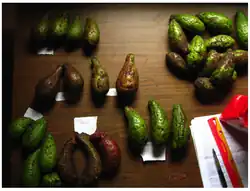 The seeds of the tree are dispersed by wild animals that eat the fruit, including tepezcuintle (Cuniculus paca), tejón coati (Nasua narica) and agoutis (Dasyprocta sp.).[3]