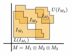 One can also define a free module in terms of decomposition into interval modules. For each define the interval , sometimes called a "free interval."[9] Then a persistence module is a free module if there exists a multiset such that .[22] In other words, a module is a free module if it can be decomposed as a direct sum of free interval modules.