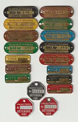 A dog tag, cat tag, pet ID tag, or pet tag is a small flat tag worn on pets' collars or harnesses.