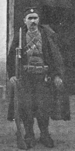 His band fought Bulgarians at Maleš on the 10th, 16th, 20 and 21 November 1905, without casualties.[6] His band of 12 fighters fought with 186 Ottoman soldiers on the hill of Krivo Brdo near Berovo on 12 May 1906, with 10 casualties; the band had been betrayed by Bulgarian Exarchists in Berovo.[1] He died while fighting on the Maleš, and with him the other nine fell: Jakov Đura Gabaj of Stara Pazova; Gligorije Đorđević of Ratevo; Đura Ivanišević of Montenegro; Đorđe Filipović-Brka of Prizren; Vojislav Vujović; Todor Božidarac of Niš; Milorad Mijailović; Milić Đukić; Mijailo Petrović of Šabac.