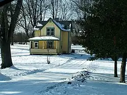 • Farm House - The house is a frame construction. It has two stories in a rectangle. The material was purchased from Sears & Roebuck through their catalogue, and is their No. 110 model (later marketed as the Silverdale).[3] Built between 1908 and 1910 it features intersecting gable roof with a front porch. The Lap siding is still original (2010). The foundation is concrete block.[2]