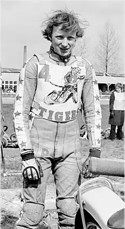 By 1979 he had established himself as a regular member of the King's Lynn team, averaging close to five points per match. In 1981 he transferred to Leicester Lions,[5] where he again averaged close to five points, also riding in the National League with Stoke Potters, where he established himself as a heat leader.[6] Two seasons with Stoke followed before he returned to Middlesbrough in 1984, the Teessiders by now renamed Middlesbrough Tigers. He moved to Long Eaton Invaders in 1985,[7] but by 1986 was only involved in a handful of matches. After a few outings for Stoke Potters in 1986 he retired from the sport for good.