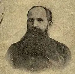 In November 1881, Kriaučiūnas became a teacher at the Marijampolė Gymnasium.[2] He taught Latin, Lithuanian, German and Greek languages. He was a dedicated teacher using new teaching methods (e.g. rhymes to help memorize grammar rules). He defied the Lithuanian press ban and in Lithuanian lessons used illegal Lithuanian books in the Latin alphabet instead of the legal publications in the government-imposed Cyrillic script. He encouraged his students to translate texts into Lithuanian, collect samples of Lithuanian folklore, learn and study Lithuanian history and culture.[2] His students included future President of Lithuania Kazys Grinius who counted some 80 students of Kriaučiūnas who later became prominent figures in Lithuanian culture, science, politics,[1] including 30 who became members of the Seimas, government ministers, and university professors.[5] While his lessons inspired patriotic feelings, they lacked structure and consistency. He taught Lithuanian grammar that was based on an eclectic mix of previous works by August Schleicher, Friedrich Kurschat, Antanas Baranauskas, Kazimieras Jaunius.[6] His apartment at the Warsaw Hotel was frequently visited by students, various activists, Lithuanian book smugglers. Kriaučiūnas became a strong supporter of Aušra, the first Lithuanian-language periodical aimed at Lithuanians in the Russian Empire – he edited articles, donated funds, distributed physical copies. He later also supported Varpas – the first meeting of Varpas collaborators took place at his apartment in June 1888.[2]