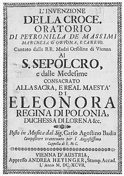 These include both the unpublished poems and writings that might be expected of a woman of this period, but also published works, including musical libretti. As early as 1696, she was collaborating with Carlo Agostino Badia, providing the texts for several of his oratorios, including the Legend of the Cross (Italian: L'Invenzione Della Croce).[7]