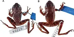 3. ^ a b Sánchez-Vialas, Alberto; Calvo-Revuelta, Marta; Castroviejo-Fisher, Santiago & De la Riva, Ignacio (2018). "The taxonomic status of Petropedetes newtonii (Amphibia, Anura, Petropedetidae)". ZooKeys (765): 59–78. doi:10.3897/zookeys.765.24764. PMC 5999683. PMID 29904270.