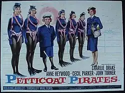 Petticoat Pirates is a 1961 British comedy film directed by David MacDonald and starring Charlie Drake, Anne Heywood, Cecil Parker, John Turner and Thorley Walters.[1] The film had its premiere on 30 November 1961 at the Warner Theatre in London's West End.