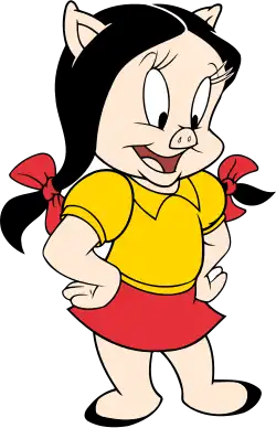 Petunia Pig is an animated cartoon character in the Looney Tunes and Merrie Melodies series of cartoons from Warner Bros. She looks much like her significant other, Porky Pig, except that she wears a dress and (since 1939) has pigtailed black hair.[15]