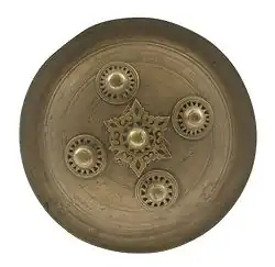 Peurise Teumaga or Peurise Lembaga is a shield originating from Aceh, Indonesia. This shield is very similar to the Peurise Awe, except that it is made of brass instead of rattan. The shield was also used by Acehnese warriors during the Aceh War against the Dutch colonials in the 19th century.[1]