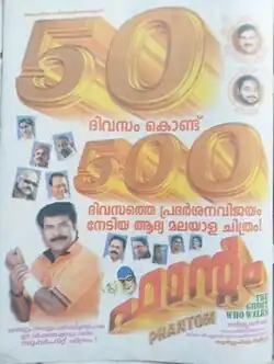 Phantom (theatrical release name: Phantom Pailey) is a 2002 Malayalam action drama film directed by Biju Varkey. It stars Mammootty in the title role, and Manivannan, Manoj K. Jayan, Innocent, Nishanth Sagar, Nedumudi Venu and Lalu Alex in other pivotal roles.[1]