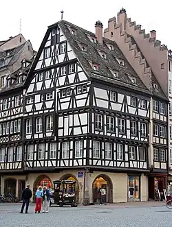 Dating to 1268, it stands at the corner of the Rue Mercière and the Place de la Cathédrale in the shadow of Strasbourg Cathedral. It has been classified as an historical monument since 1936.