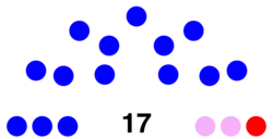 The 1951 Home Rule Charter established the council as the legislative arm of Philadelphia municipal government, consisting of seventeen members. Ten council members are elected by district and seven from the city at large. At-large council members are elected using limited voting with limited nomination in which voters may only select five candidates on the ballot, and which guarantees that two minority-party or independent candidates are elected.[6] Each is elected for a term of four years with no limit on the number of terms that may be served.[7]