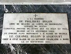 Philibert Hugonet (died 1484) (called the Cardinal of Mâcon) was a French Roman Catholic bishop and cardinal.