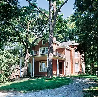 The Philip A. Wolff House and Carriage House, also known as Belmont Hill, is a historic building located in Cedar Rapids, Iowa, United States. An Ohio native, Wolff lived in several states and the West Indies before settling in Maquoketa, Iowa. He moved to Cedar Rapids where he established a brickworks with his son. Wolff had this two-story vernacular Italianate house and accompanying carriage house built in 1883 with bricks made at his business, which was on the same grounds.[2] At the time it was built, the house was located in a suburban area of Cedar Rapids. This was during a period of economic growth for the city. The house features paired brackets under the eaves, the windows have brick arches above and limestone sills, a three-sided, two-story bay, and a projecting center pavilion. The carriage house is architecturally similar to the main house.[2] They were listed together on the National Register of Historic Places in 1982.[1]