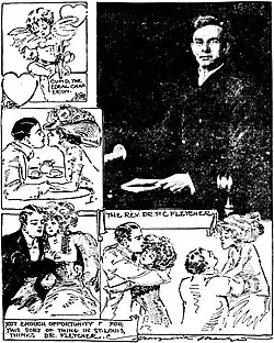 Between 1902 and 1915, Fletcher gave sermons on "Love, Courtship and Marriage"[2][3] and "Vital Lessons in Love."[4][5] In his obituary, the St. Louis Post-Dispatch recalled that these sermons, as well as his advice about cosmetics for women, caused "much discussion."[6]