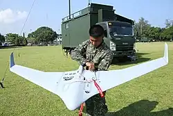 A marine UAV operator with the MAG Super Swiper II UAV, which is part of the Marine Forces Imaging & Targeting Support System (MITSS) of the Philippine Marines.