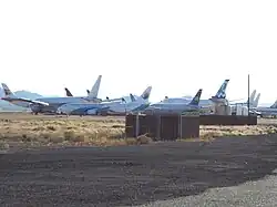 • AerSale, Inc. operates a maintenance facility on the airfield which comprises maintenance, storage and disposal. The northern side of the airfield is used for storage and many Boeing 737, Airbus A340 and Boeing 747s are visible from the road as they await their fate.