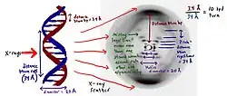 - ^ "The instant I saw the picture my mouth fell open and my pulse began to race." James D. Watson (1968), The Double Helix, page 167. New York: Atheneum, Library of Congress card number 68-16217. Page 168 shows the X-shaped pattern of the B-form of DNA which provided details of the helical structure of DNA to both scientists Watson and Crick.