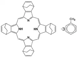 Chemical structure of (1,4:8,11:15,18:22,25-tetraethano-29H,31H-tetrabenzo[b,g,l,q]porphyrin (CP).