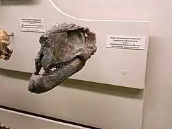 Phthinosuchus was named in 1954 by Ivan Yefremov. It is currently only known from the back of the skull, as the front of the skull was lost after description. Two species, P. discors and P. horissiaki, have been described.[1]