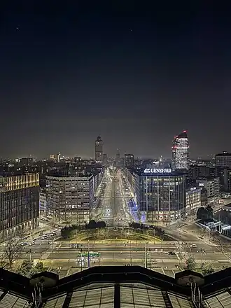 The Piazza Duca d'Aosta is a large and busy square in Milan, Italy, where Milan's Central Station, the Pirelli Tower and the city's business district is located. It is well known for containing the architecturally impressive and majestic Milan Central Station, several skyscrapers (including the Pirelli Tower) and exclusive hotels, such as the Excelsior Hotel Gallia.