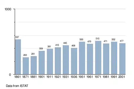 - ^ "Popolazione Residente al 1° Gennaio 2018". Italian National Institute of Statistics. Archived from the original on 30 June 2019. Retrieved 16 March 2019.