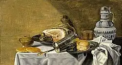 According to the RKD he was a member of the Haarlem Guild of St. Luke from 1632, and became master in 1642.[1] He got married in Haarlem in 1644 and again in Amsterdam in 1653, in March 1662 witnessed the marriage of his son Pieter in Weesp.[1] After 1662 nothing more is known of him. Though the Haarlem St. Luke archives do not mention his style, he is recorded by Vincent van der Vinne, who was a still life painter himself, and based on his signature in church documents, his works have been attributed to the monnogrammist 'PVB'.[1] These works were painted in the monochrome still life style of Willem Claesz Heda and Pieter Claesz, also of Haarlem. One period copy of Pieter Claesz painting has also been attributed to him.[1]